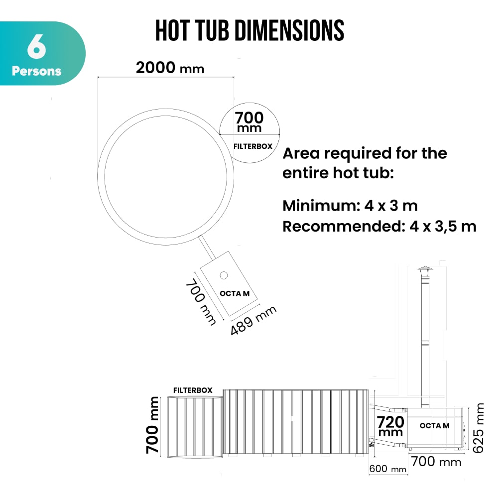 Configure Square Wood Fired Hot Tub for 6-8 Persons | External HeaterRegular price 4.925,00 €Regular priceUnit price per
