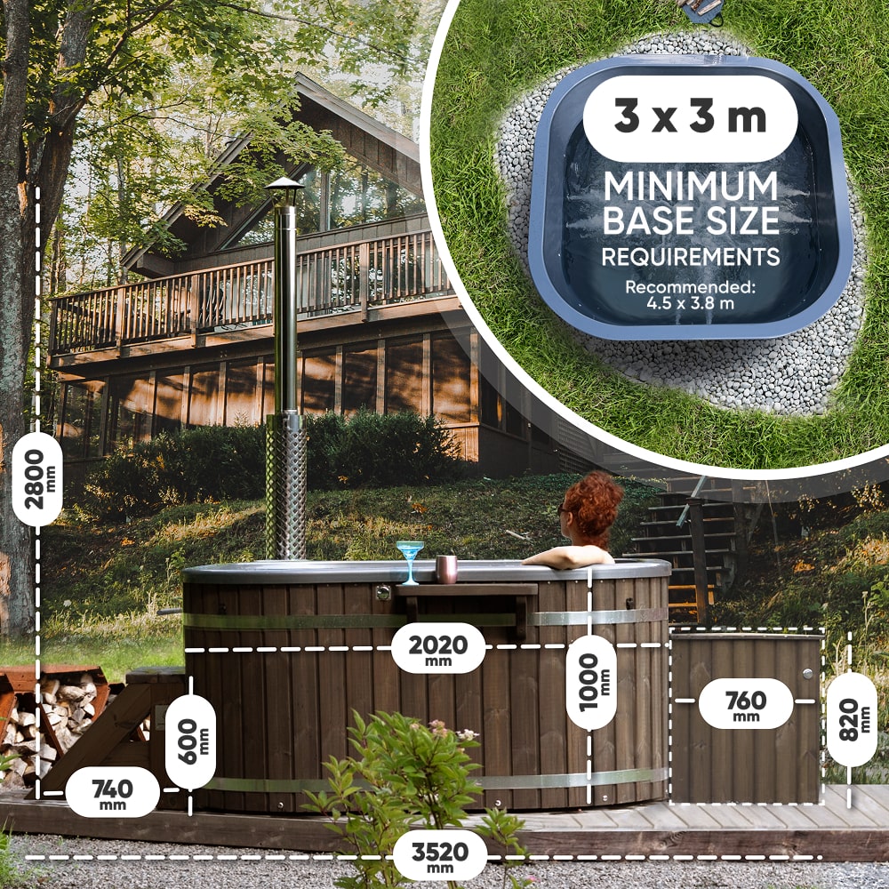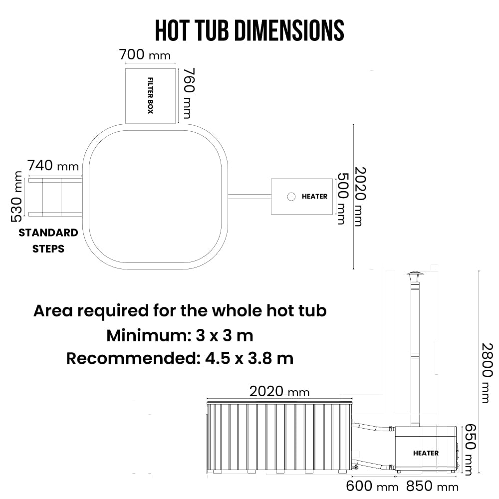 Configure Square Wood Fired Hot Tub for 6-8 Persons | External Heater