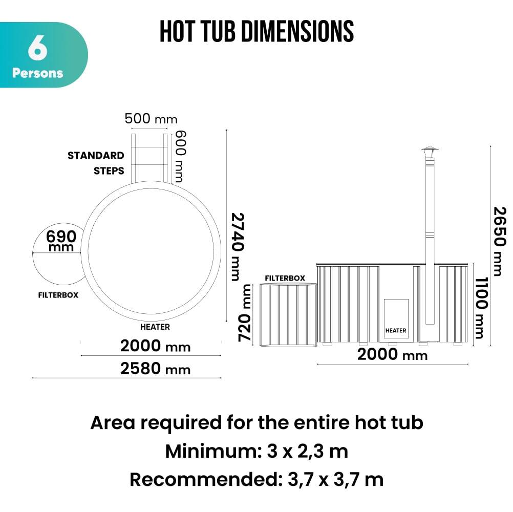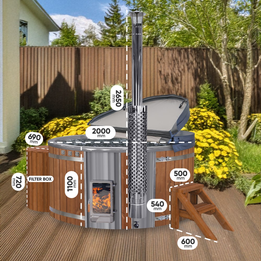 Wood Fired Hot Tub with Verta heater & Sand Filter with round box