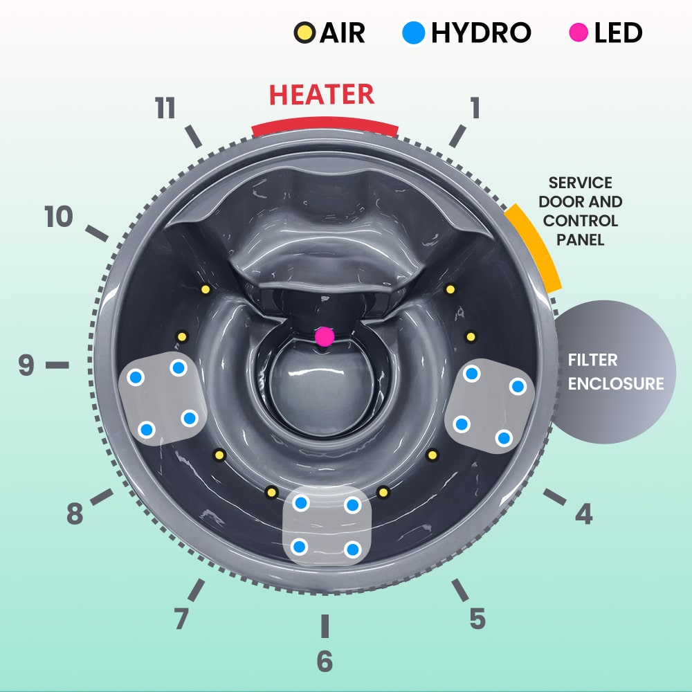 All-inclusive hot tub with a acrylic insert and filtration. This configuration includes: