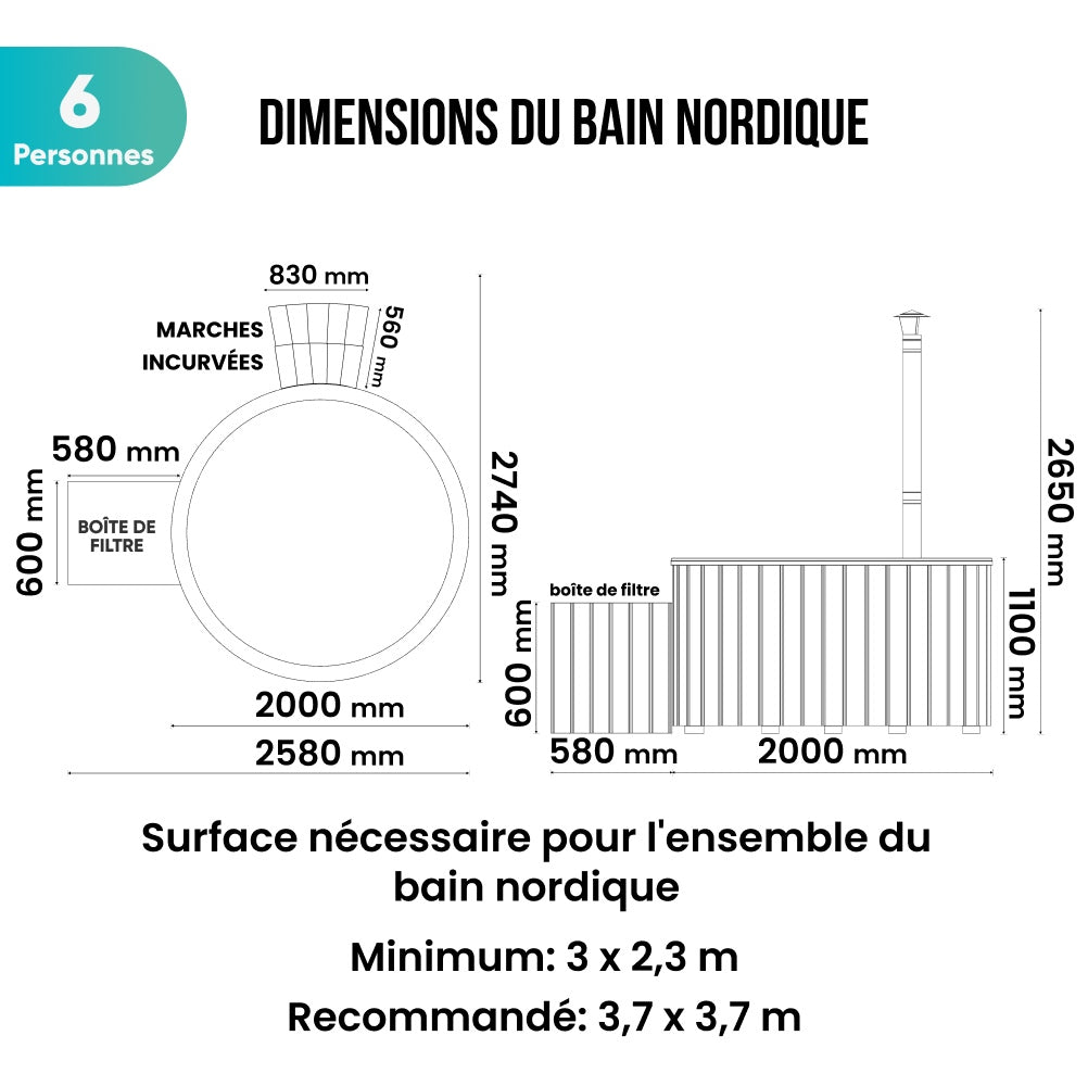 Bain nordique Ofuro | Fibre de verre | Poêle intégré | 2 personnes | Configurable