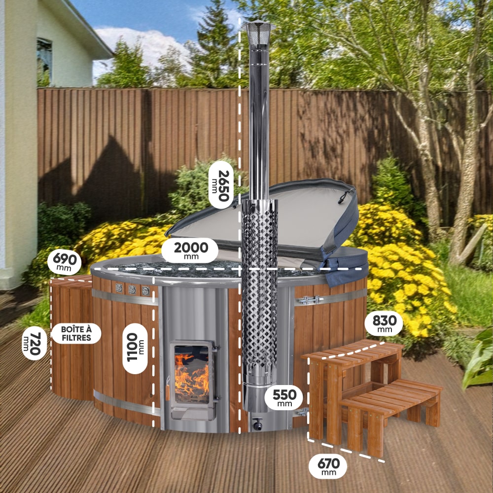 Spa nordique avec filtre premium rond et poêle Verta | Meilleure configuration