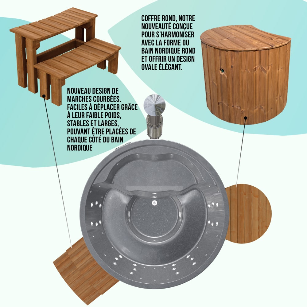 Bain nordique tout compris avec insert en acrylique et système de filtration Premium. Cette configuration comprend :