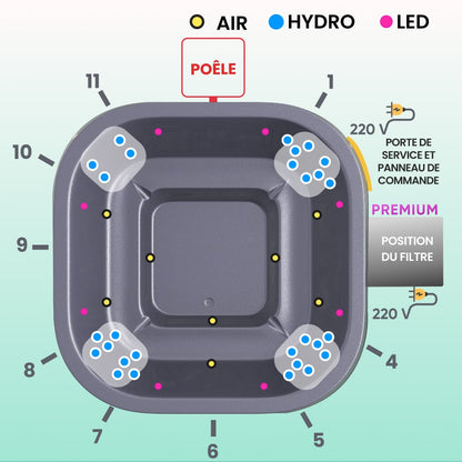 Bain nordique carré avec 28 jets hydromassants – massage ciblé | Filtre à sable Premium | Pour 4-8 personnes
