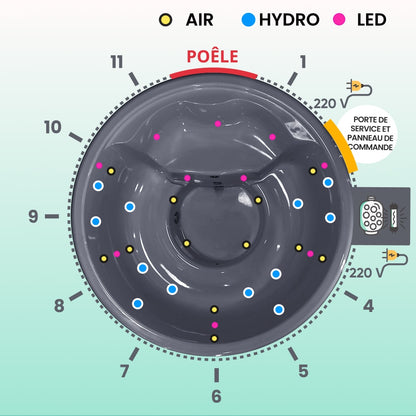 Bain nordique | Cuve en fibre de verre grise | 16 jets d'eau et 12 jets d'air