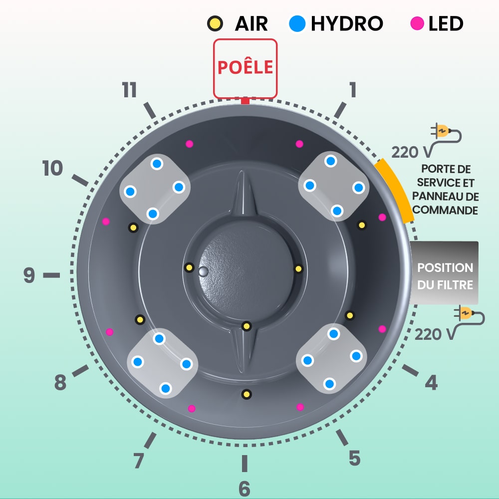- Système de massage à air, 8 jets, 0.7 kW (330 €)