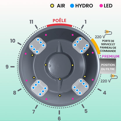 Bain nordique | Poêle Horizon™ | Filtre à sable avec lampe UV-C | 16 jets hydromassants | Pour 4–8 personnes