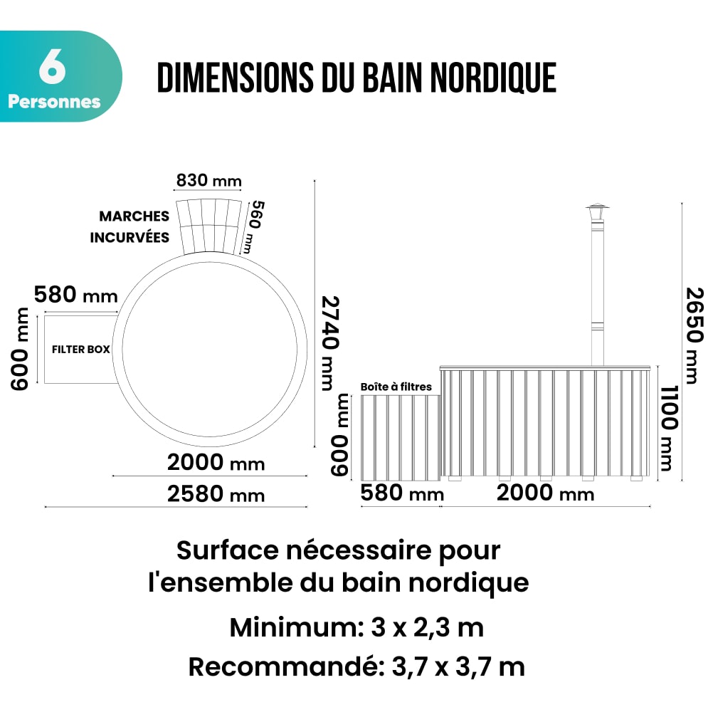 Bain nordique Ofuro | Fibre de verre | Poêle intégré | 2 personnes | Configurable