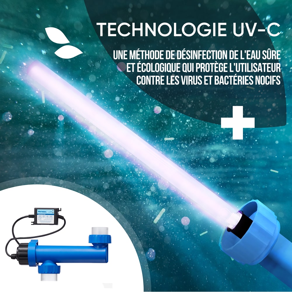 - Filtre à sable avec boules filtrantes, boîte à filtre, système de stérilisation de l'eau Blue Lagoon UV-C (1050 €)
